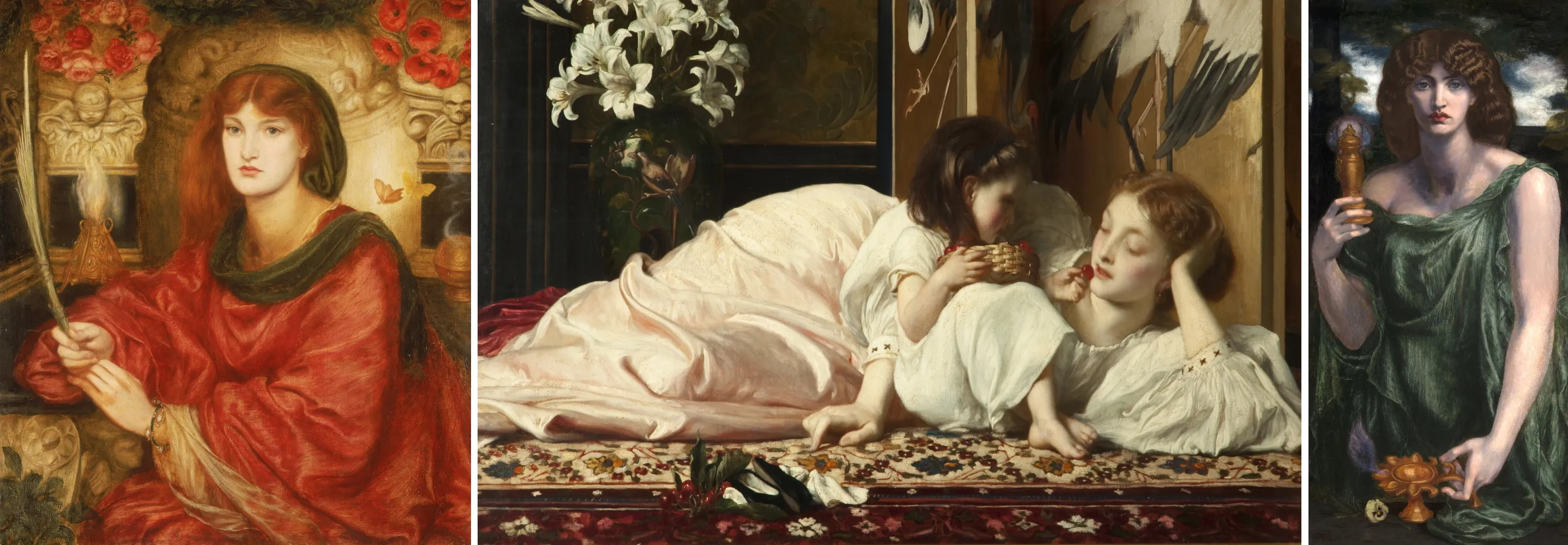中央:フレデリック・レイトン《母と子(サクランボ)》1864-65年頃、ブラックバーン美術館 (C) Blackburn Museum and Art Gallery