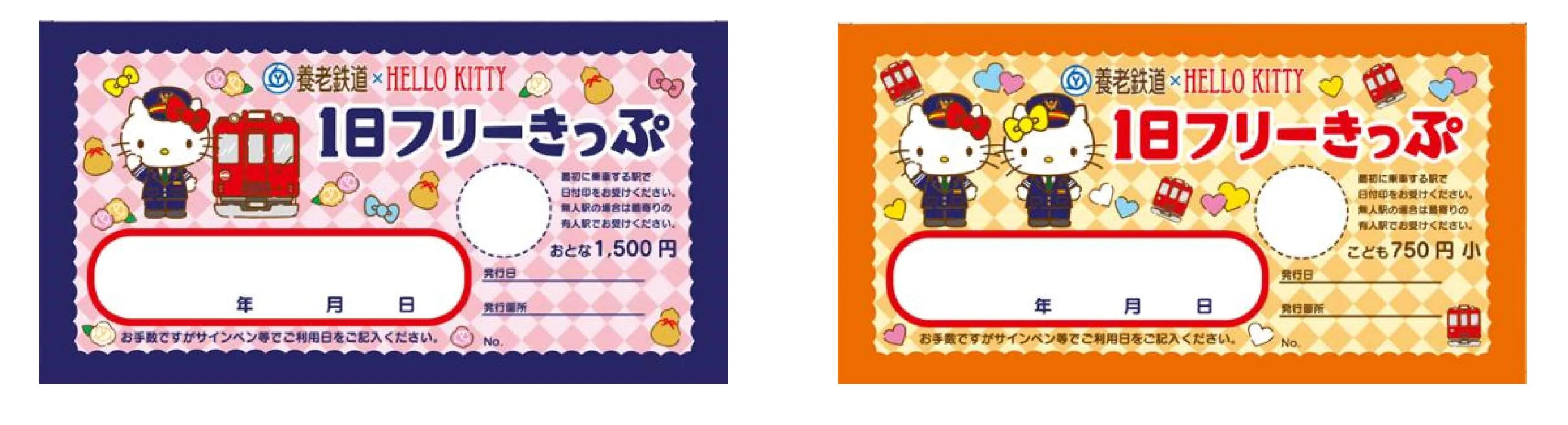 ○養老鉄道×HELLO KITTY」1日フリーきっぷ:発売価格:大人1,500円、