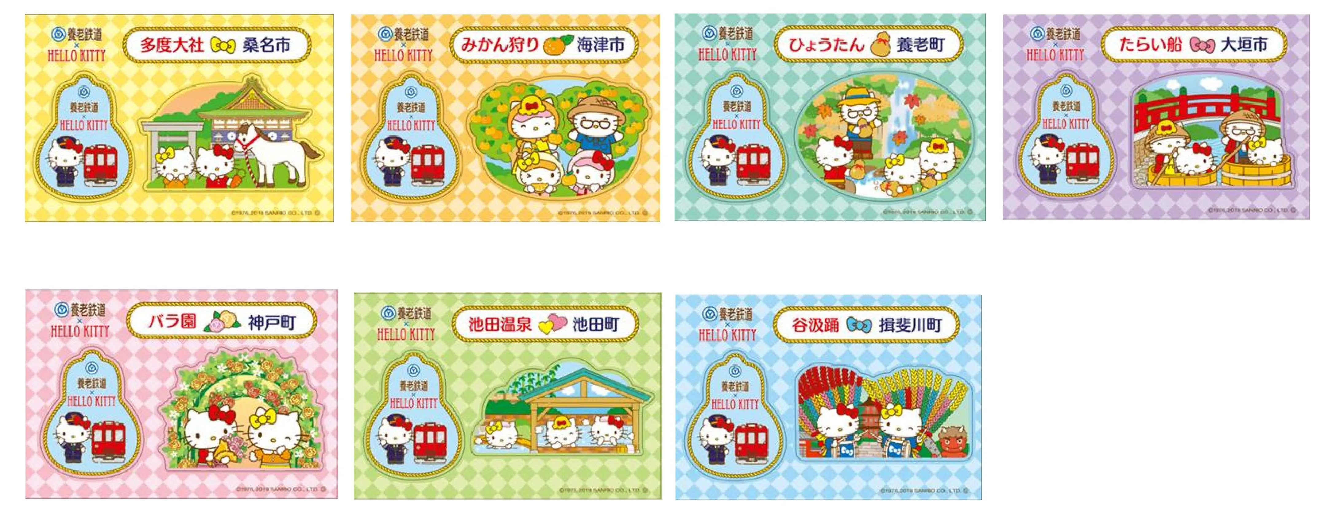 ○養老鉄道×HELLO KITTY」シール(全7種類):発売価格:1枚300円