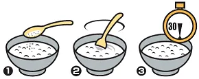 (1) おかゆに「おかゆケアスルー」をふりかけてください