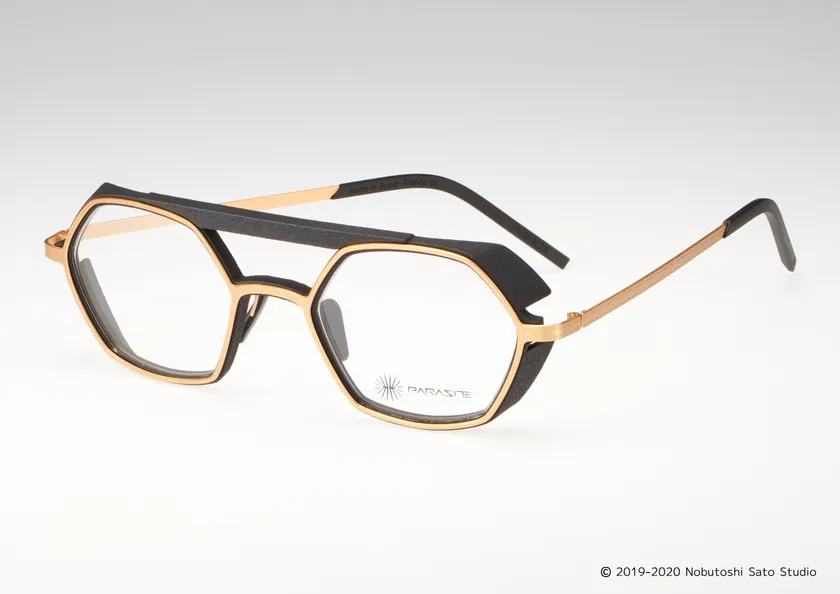 フレームの素材はステンレススチールと3Dプリンタで作られたポリアミドパウダー製。最先端の素材と対比するようなレトロデザインが見事に調和しています。2つの相反する異なる世界の融合というPARASITEのテーマを表しています。