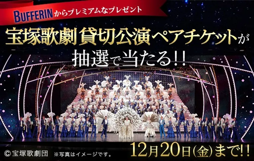 『バファリン』は、頭痛や生理痛の痛みを我慢せずに、自分らしい時間を過ごす女性を応援しています。この度、情熱あふれる舞台を観劇して自分らしい時間を過ごしていただくために、宝塚歌劇のペアチケットを抽選でプレゼントするキャンペーンを実施します。