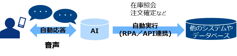 お客さまの商品注文から、在庫照会や注文確定などの後続の業務まで、プロセス全体を自動化することが可能です。AIによる自動応答とRPA、あるいはAPIを介したシステム連携を行うことで、人手を介さないスピーディーな処理を実現します。