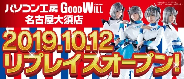 グッドウィル名古屋大須店のリプレイス オープンを記念し、グッドウィル全店 及び、秋葉原BUYMORE店、パソコン工房大阪日本橋店にて協賛セールを開催いたします。