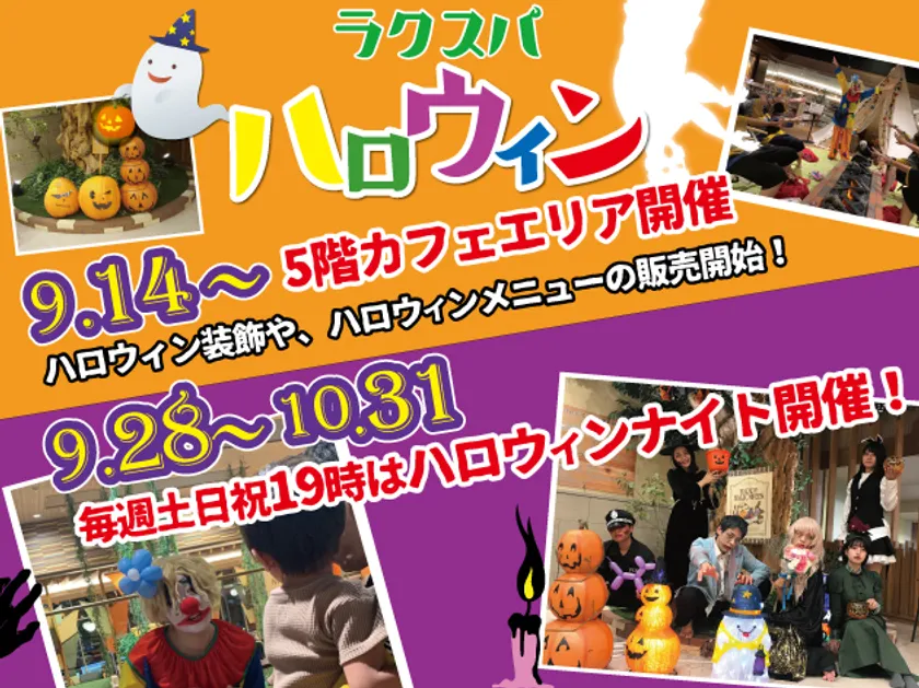 スーパー銭湯を運営する株式会社極楽湯(本社:東京都千代田区、代表取締役社長:新川 隆丈)は、2019年10月1日(火)よりRAKU SPA GARDEN 名古屋にて、“RAKU SPA ハロウィン2019”と題して各種イベントを開催しております。