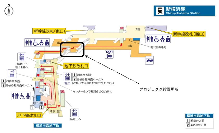 東海道新幹線「新横浜駅」から横浜市営地下鉄へ向かう2号通路の途中に約3m×8mの壁面があり、横浜市営地下鉄を利用するお客様は必ず目にする位置にあります。