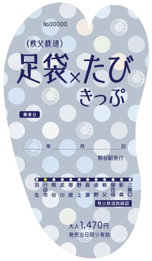 秩父鉄道株式会社(本社:埼玉県熊谷市、代表取締役社長:大谷 隆男)では、10月11日(金)から足袋のまちとして知られる埼玉県行田市と連携して足袋をかたどった特別仕様のフリーきっぷ「足袋×たびきっぷ」を発売します。本きっぷの発売に合わせて、行田散策に役立つ、市内の見どころを紹介する専用パンフレットを配布します。詳細は下記のとおりです。