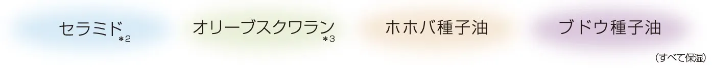 *1 イソノナン酸イソトリデシル *2 セラミドNP *3 スクワラン