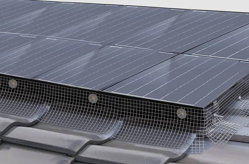 近年一般家庭のソーラーパネルの普及により、屋根とソーラーパネルの間の隙間から鳥が侵入する被害が急増しています。鳥が侵入するとソーラーパネルの下に営巣して住みつき、フン害・騒音・パネルの故障・発電効率の低下につながる恐れがあります。