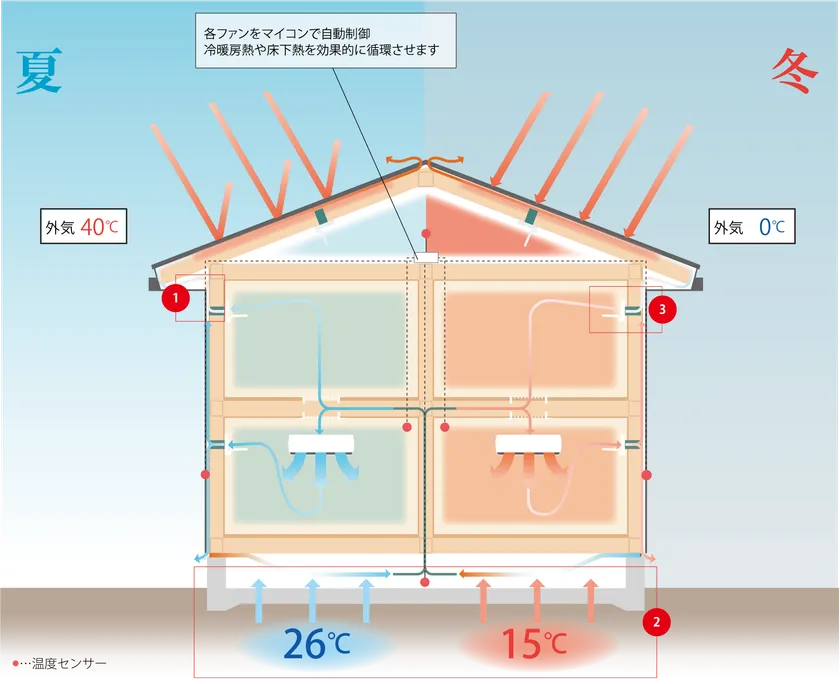 1. 家の真下には、夏涼しく冬暖かい熱が蓄えられていました。(200件以上の実測データで発見)
