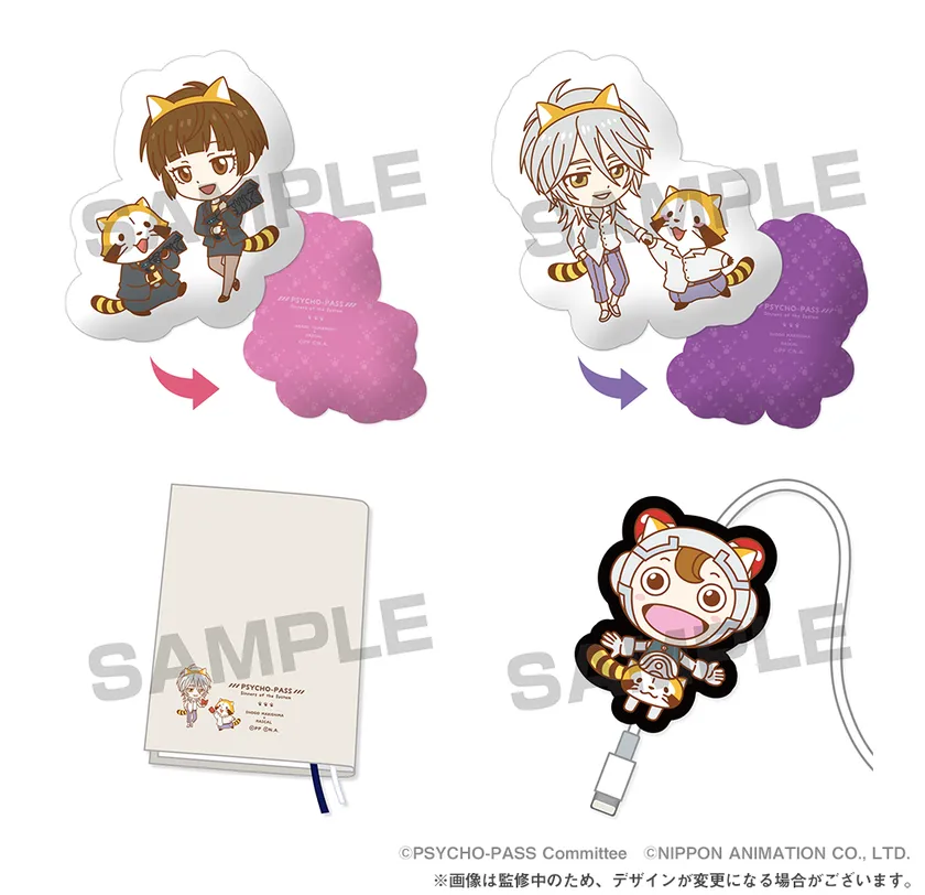 今回初めての商品化となる「常守朱×ラスカル」「槙島聖護×ラスカル」のコラボデザイングッズを販売!