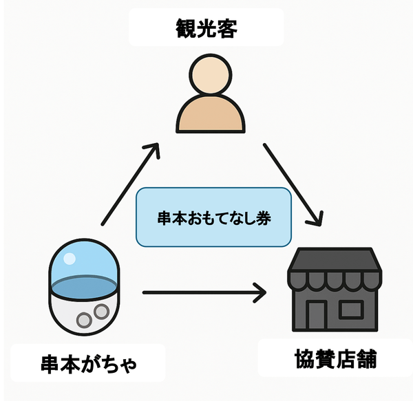 この券は、町内の協賛店舗(約20店舗)で商品やサービスと交換でき、観光客に地域ならではの“おもてなし体験”を提供するものです。カプセルトイを通じて地域店舗への来訪を促し、交流や消費の促進、地域経済の活性化が期待されます。