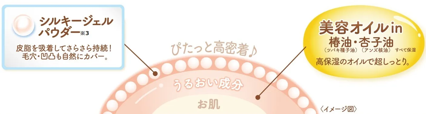 美容オイル※1を 2倍※2配合し、粉浮きしらずのうっとりうぶ肌に仕上げます。