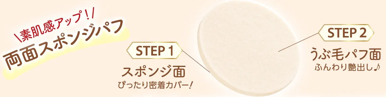 (2)両面スポンジパフで素肌感アップ