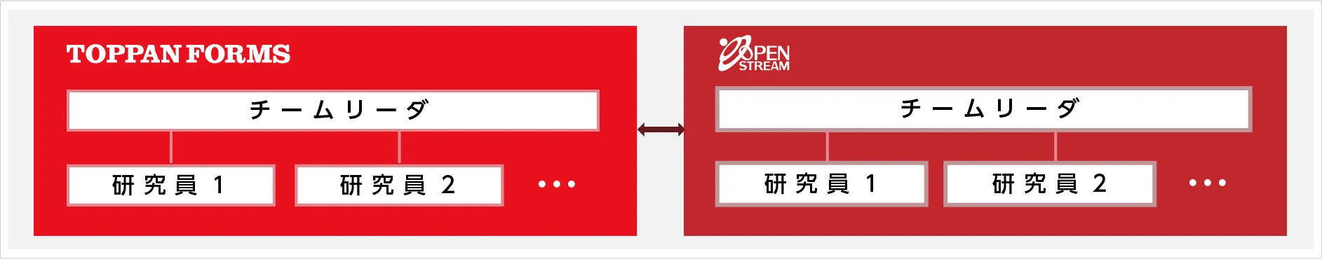 本プロジェクトでは、オープンストリームとトッパンフォームズとの双方からR&D実務担当者を数名選出して共同チーム体制を作りR&Dを推進しています。