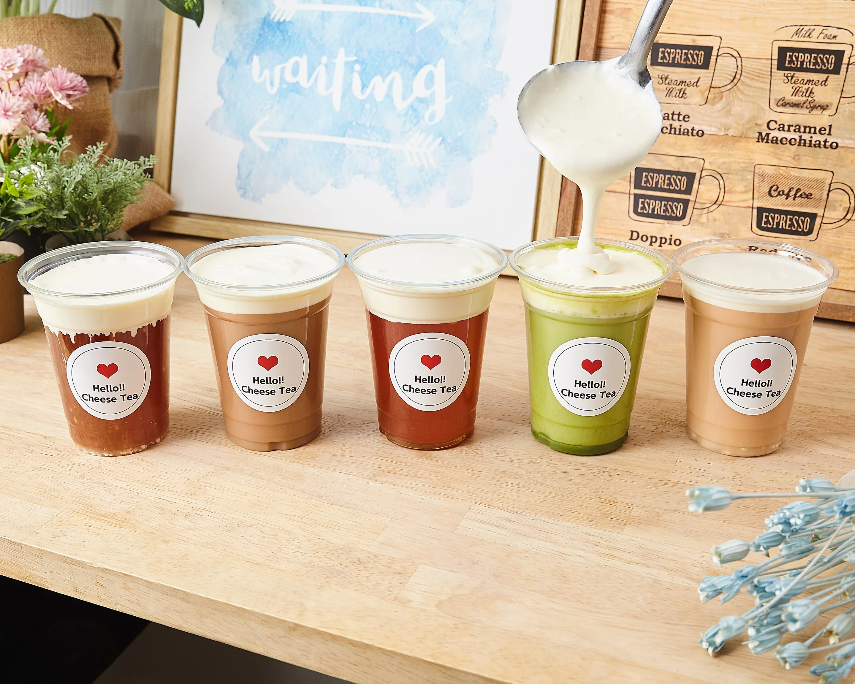 まずは、濃厚なチーズクリームだけ召し上がり下さい。続いて、ストローを使ってドリンクだけ。最後にチーズクリームとドリンクを混ぜて、マリアージュをお楽しみください。1杯で三つの味を楽しめるのも人気の秘訣です。皆さまのご注文を心よりお待ちしております。