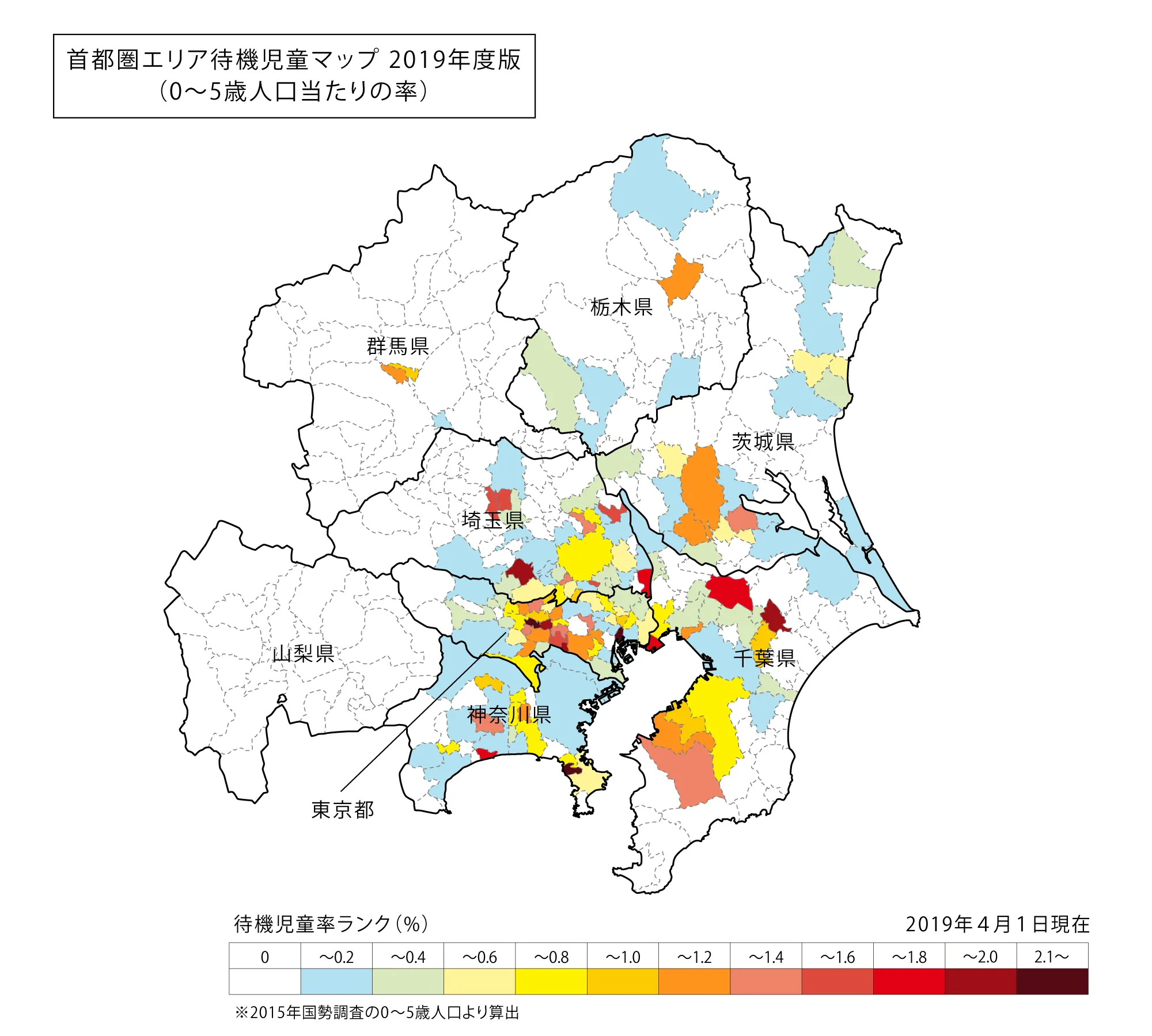 首都圏エリア待機児童マップ2019年度版(0~5歳人口当たりの率)