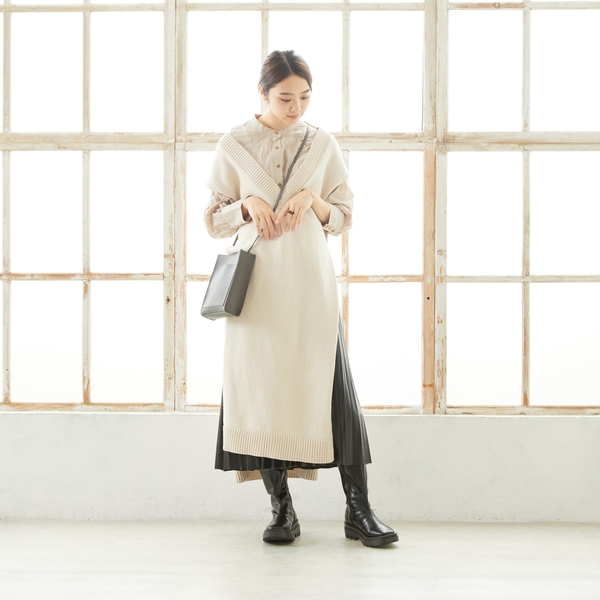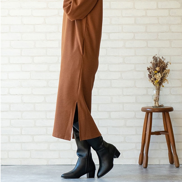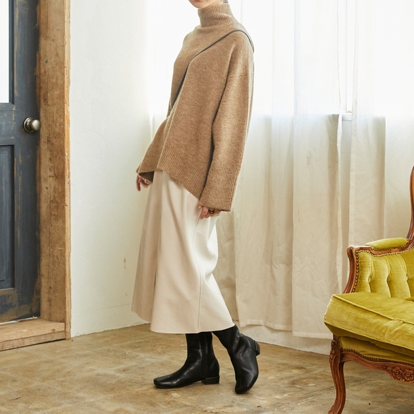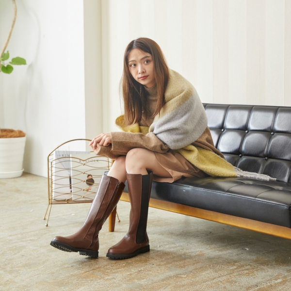 定番サイドゴアもロングブーツで今年らしく。ボリューム感がありながらも筒周りのシルエットがシャープなので、すっきりとした印象に。