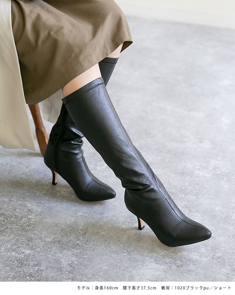商品名 : menue (メヌエ) 選べる筒丈 7cmヒール ストレッチ ロングブーツ