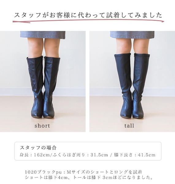 身長によって筒丈のお悩みは様々。足のサイズとは別に、身長や好みに合わせて筒丈が選べるアイテムです。選ぶ際はスタッフの試着も参考に。