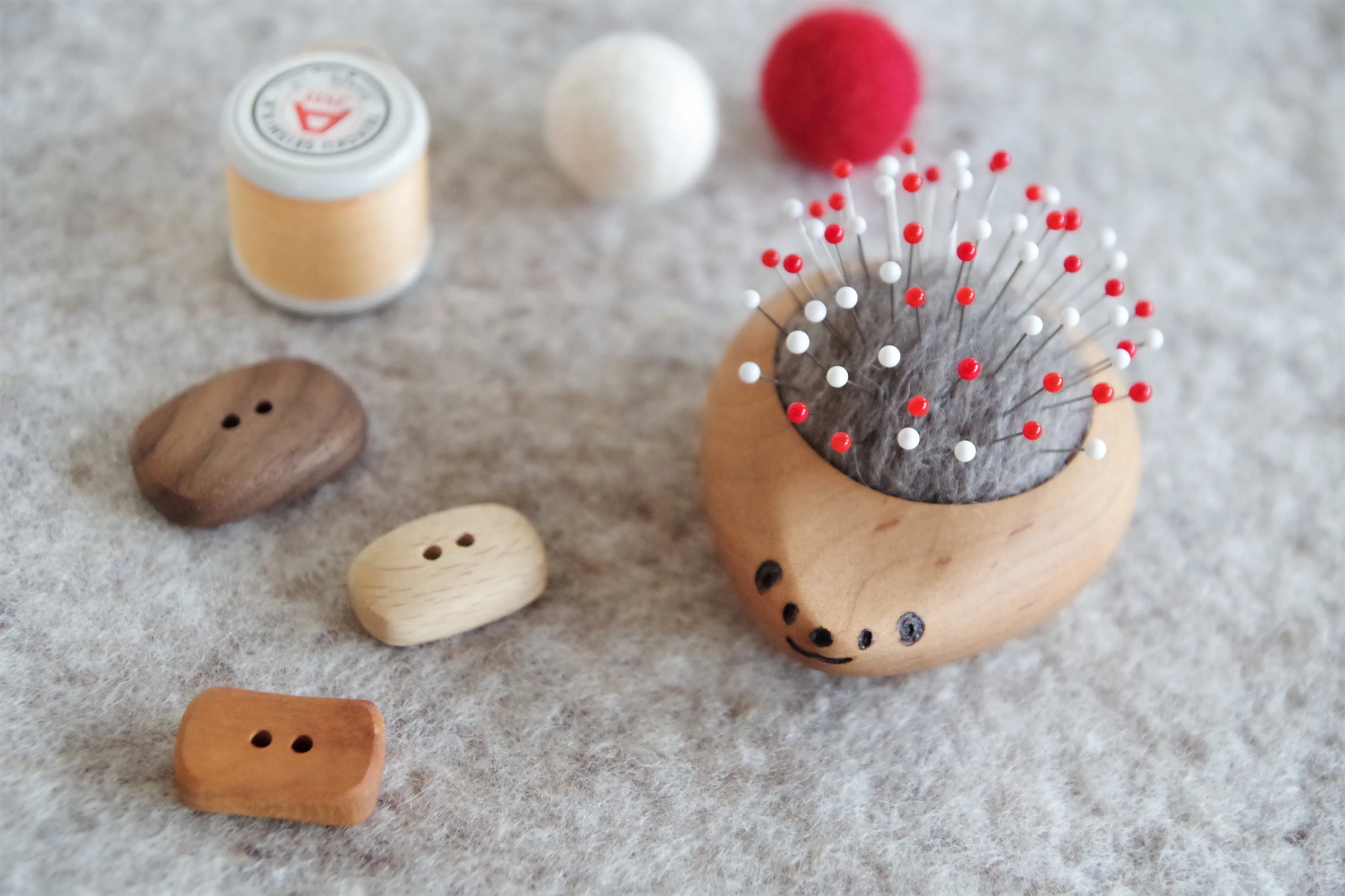 木で作るはりねずみの ピンクッション by noco