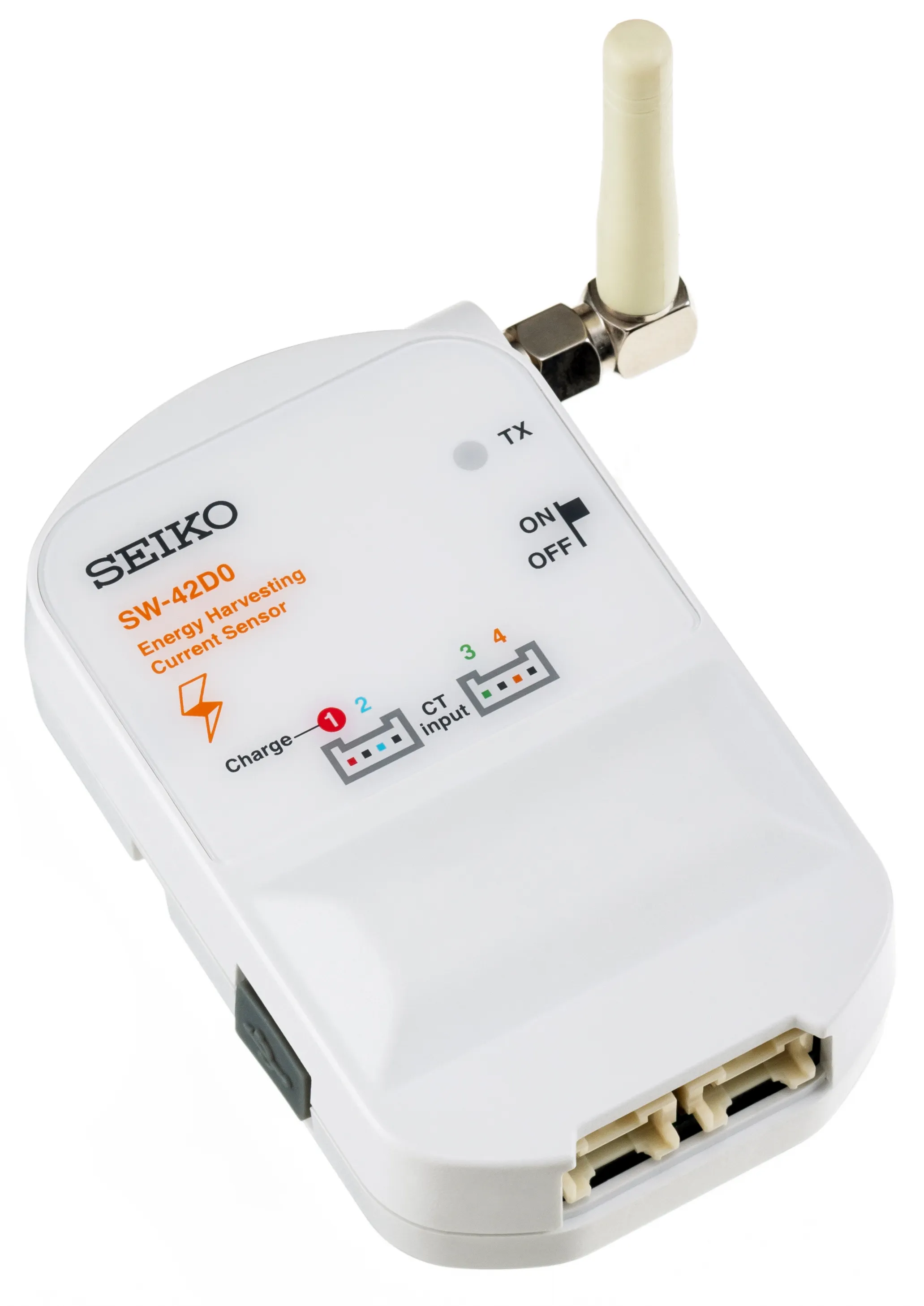 そこでSIIでは、設備の分電盤の電源ケーブルに、CT(カレントトランス)を接続することにより電流値を測定、920MHz帯無線で送信すると同時に、その電流を電源とし、継続動作が可能な、エネルギーハーベスト型のワイヤレス電流センサノード「SW‐42D0‐1000」を開発しました。これにより配線工事や定期的な電池交換をすることなく、継続的に設備の稼働状況や消費電力を見える化をすることが可能になります。