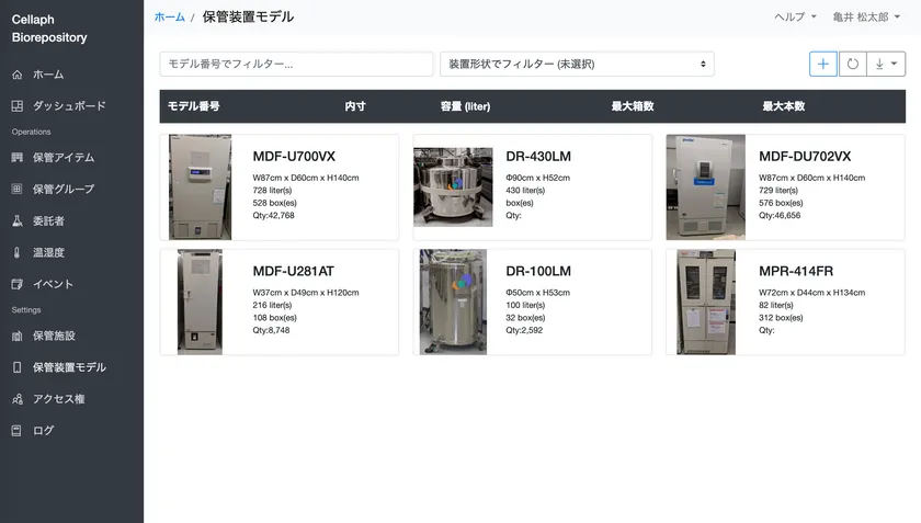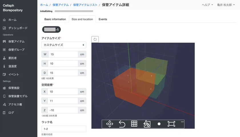 Cellaphは、実際に保管庫の扉を開けることなく、大切な検体のロケーションをウェブブラウザでいつでもどこでも確認できる日本初のサービスです。3D技術を導入したことで、より直感的なロケーション管理が可能となっています。