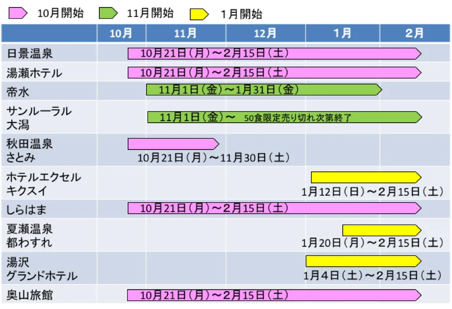 参加宿泊施設: 日景温泉、四季彩り秋田づくし 湯瀬ホテル、