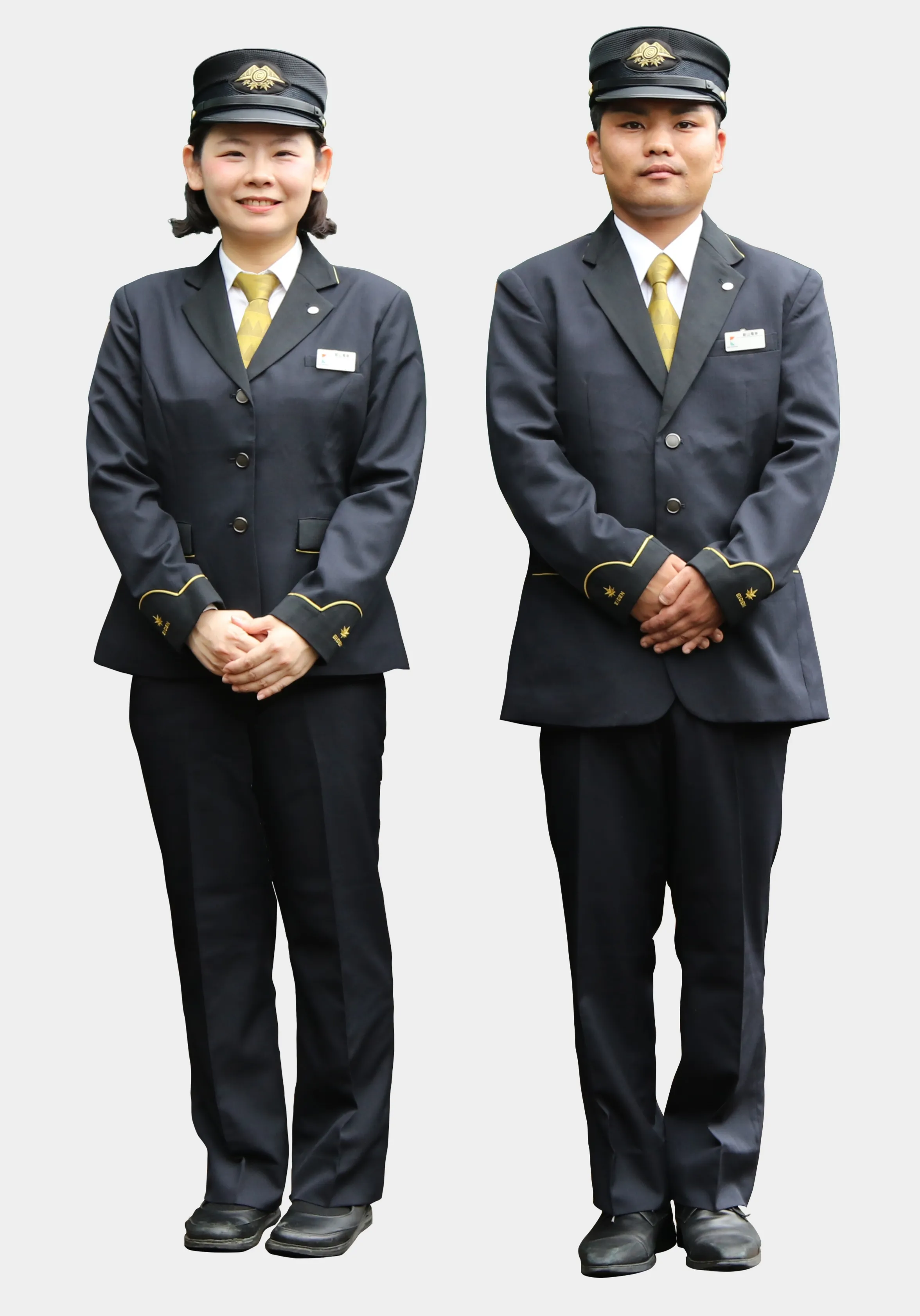 3.制服の随所に展開した金色ラインは、叡山電車のイメージリーダーである「きらら」、「ひえい」両車両外観に共通して展開しているデザインをモチーフにしました。