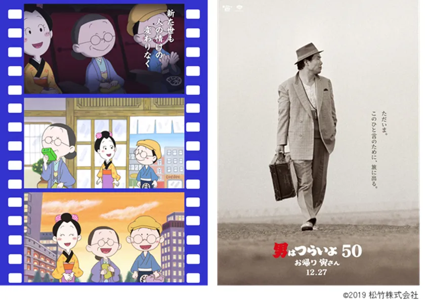 12月27日(金)の新作映画 全国公開に向けて今後、第32回東京国際映画祭(10/28~11/5)でのオープニング上映、NHK土曜ドラマ『少年寅次郎』放送開始(10/19~)、「寅さんサミット2019」開催(11/2・3)、ノベライズ版の発売(12/4予定)とイベント目白押しで、“寅さんムーブメント”のさらに大きな盛り上がりが期待される中、同タイアップCMはそれらの先陣を切って、同社提供の人気番組『笑点』の10月13日(日)放送回からオンエアを開始。以降も他の全国ネット提供枠と併せ、来春2月中頃まで密度濃く露出を図っていく予定です。