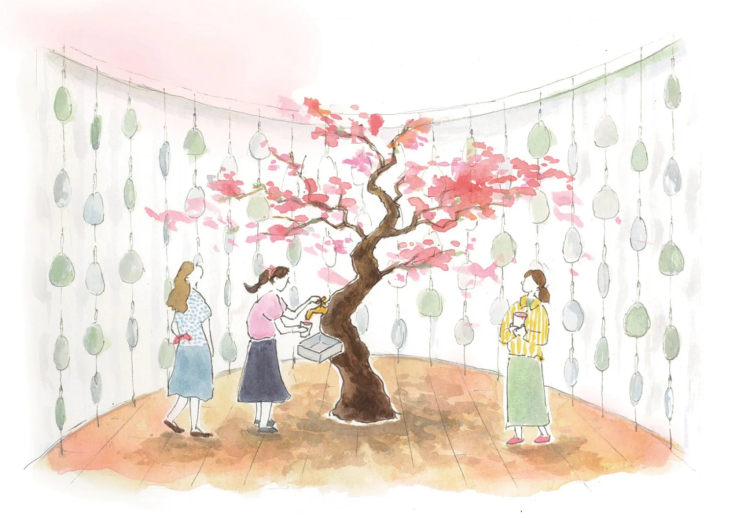 ソラノビーチBooks&Cafeに「梅の花咲くビーチ」が登場します。熱海梅園から譲り受けた梅の枝に、刺繍でできた梅の花を約5,000個飾り付けて作成した「梅の木オブジェ」で彩る空間です。日本一早咲きの梅で有名な熱海梅園では「熱海梅園梅まつり」開催時に最も美しい梅の状態になるよう枝の剪定作業が行われています。その際に出た枝にもう一度花を咲かせ、ビーチ空間に設えることで、他にない梅の花見を楽しめます。