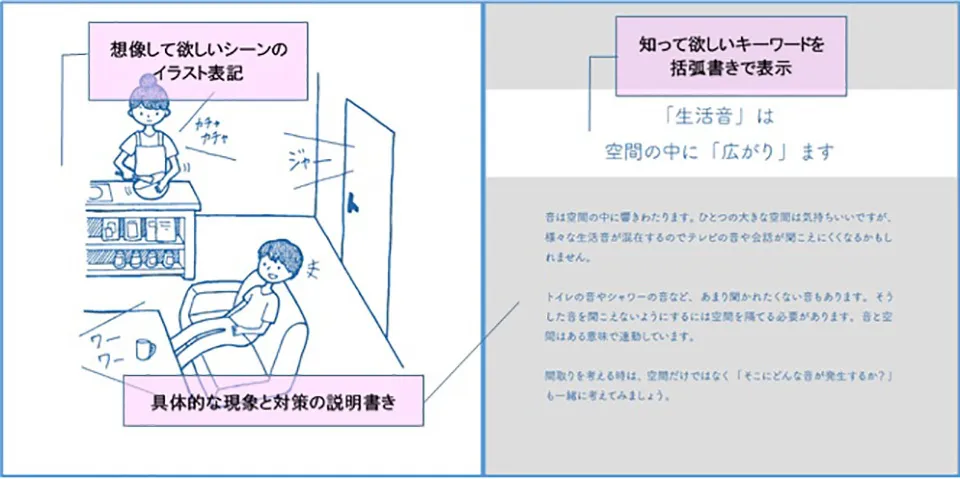生活の中で困る具体的なシーンを想像しやすくイラスト表記しました。
