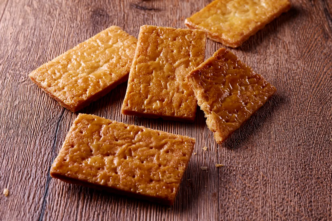 じっくりプレス。飴がけした表面がパリパリッ!中はサクサクのパイ。