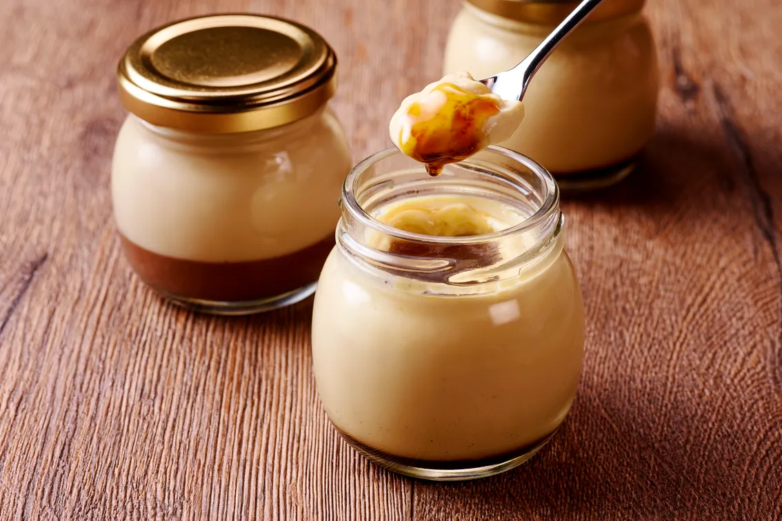 濃厚ショコラプリンと生キャラメルソースを合わせた2層のプリン