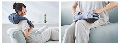 マイリラ マルチマッサージャーは、充電式コードレスと脱着可能な「首肩用ベルト」を新たに搭載したことで、場所を問わずどこでも自在に、全身マッサージができます。4つのもみ玉で全身の各部位に最適なマッサージを行う新開発の「マルチもみメカ」を搭載し、首や肩はつかむように、背中や腰は広範囲を指圧するように、脚は左右からはさむように、それぞれの部位に対して最適なマッサージで心地よくもみほぐします。手のぬくもりをイメージした「ヒーター付き回転式もみ玉」を採用していますので冷えを感じる時にも温めながらマッサージできます。好きな場所で快適に使えるコードレス(充電式)で、首肩用ベルトは脱着可能ですので、当てたい部位に合わせて自由に使い分けることができます。