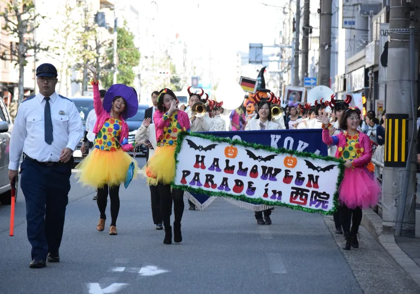 京都外国語大学(京都市右京区)の「Halloween in 西院 実行委員会」は、10月27日(日)に、仮装をして四条通り(京都外国語大学から西院小学校まで)を練り歩く、「ハロウィンパレード in 西院2019」を実施します。本イベントは四条通周辺の地域住民や商店、学生とのつながりを強めることを目的に、2015年から毎年開催されています。また、京都市と(公財)大学コンソーシアム京都が、大学・学生と地域が協力して京都のまちづくりや、地域の活性化に取り組む企画に支援金を交付する「大学地域連携創造・支援事業(通称:学まちコラボ事業)」の一環でもあります。