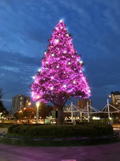 ・ピンク色のイルミネーションで装飾されたシンボルツリー