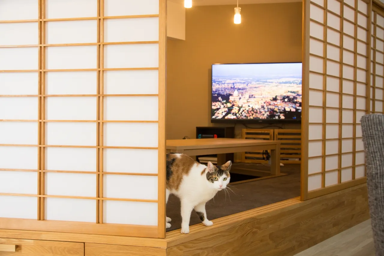 和紙が生み出すやわらかな光と風合いを、猫との暮らしで楽しめます。