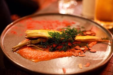 料理はイタリアの2つ星レストランで修行したオーナーシェフ前田和彦が考えたニューアメリカンスタイルの料理とイタリア、フランス料理を融合し創作。シンプルさの中に素材の味を存分に活かした料理を提供します。