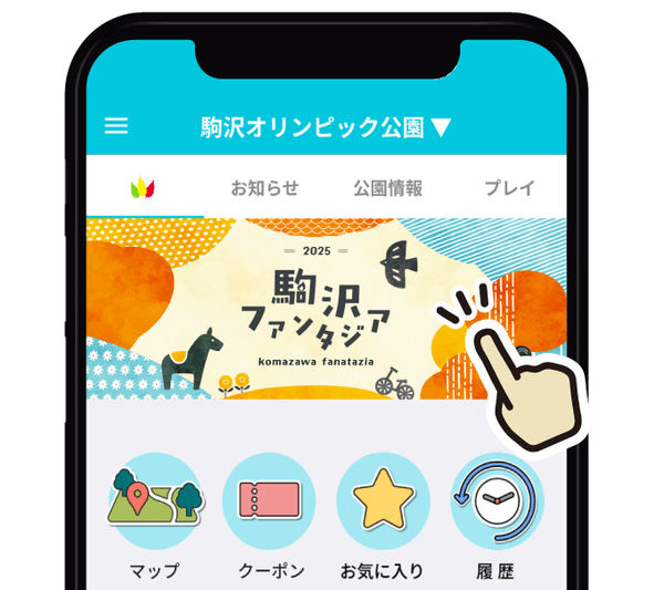 アプリを起動すると、「駒沢ファンタジア2025」のバナーが表示されます。