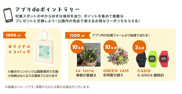 ※ポイントを手に入れましたら、駒沢オリンピック公園管理所にて「アプリdeポイントラリー」の駒沢ファンタジア画面をご提示ください。