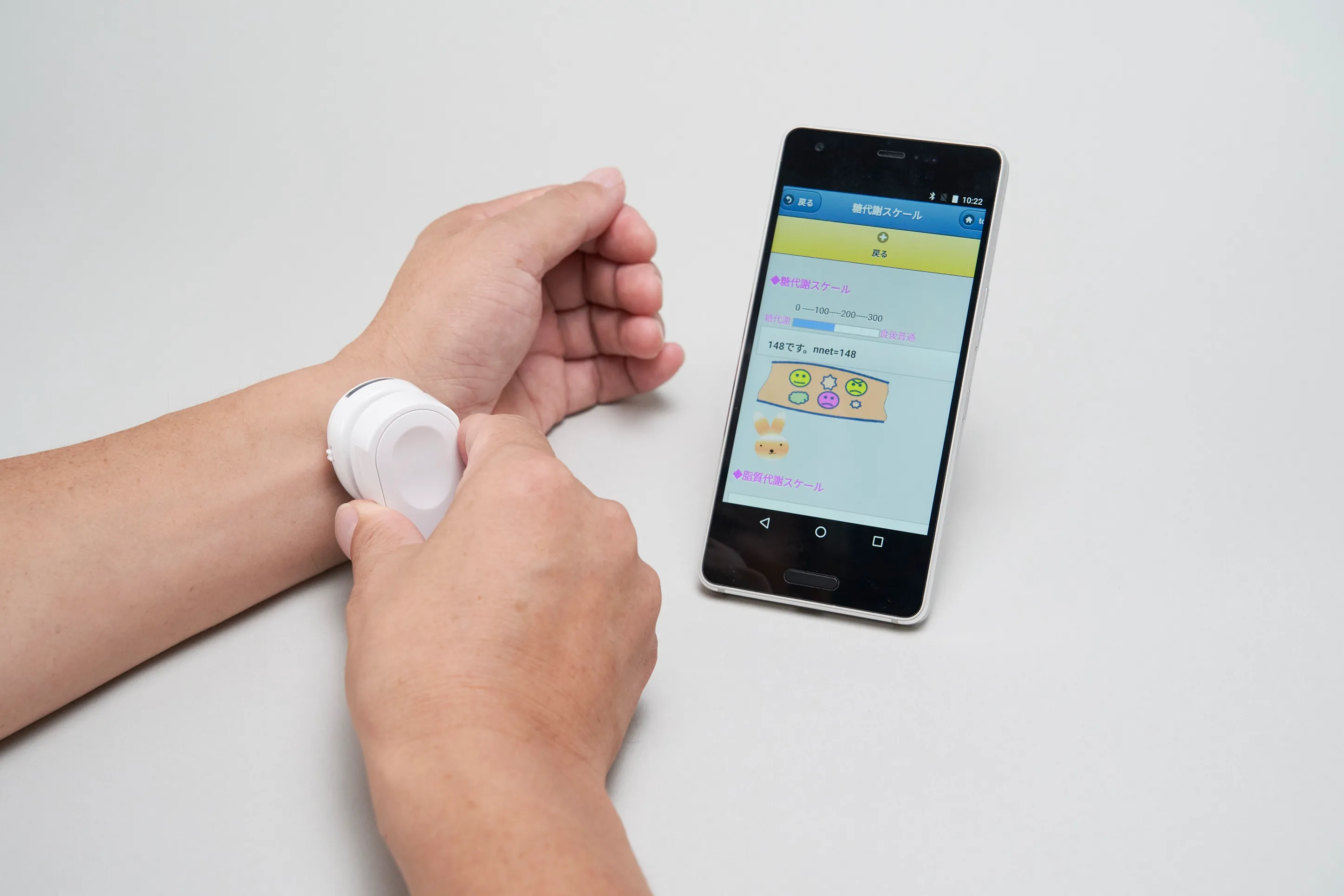 糖質ダイエットモニタを使った測定の様子