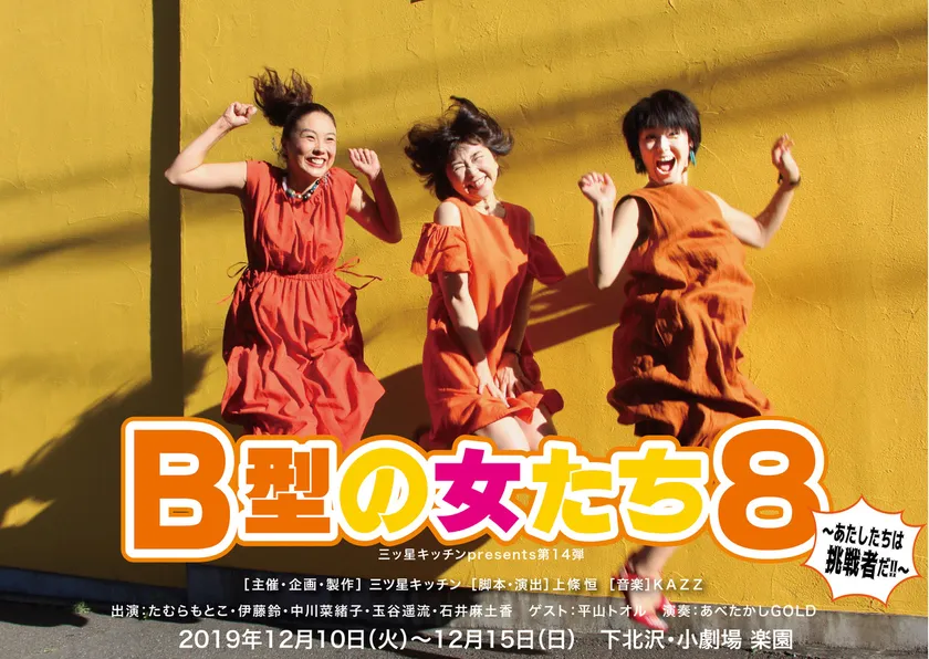 女性の人生を応援!三ツ星キッチンpresents 第14弾 『B型の女たち8~あたしたちは挑戦者だ!!~』 2019年12月10日(火)~15日(日)に下北沢で上演