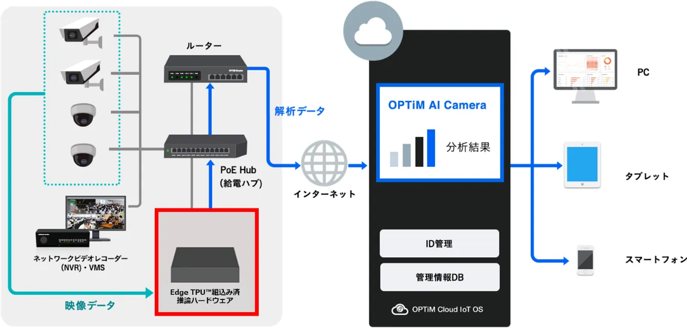 AI・IoT・ビッグデータプラットフォームのマーケットリーダーである株式会社オプティム(以下 オプティム)は、AIを活用した画像解析ソリューションである「OPTiM AI Camera」と、Google(TM) が提供する 「Edge TPU(TM) 」 を組み込んだ推論ハードウェアとの接続実証を完了し、エッジコンピューティングデバイス「OPTiM Edge」シリーズの新モデルのプロトタイプバージョンを追加しました。