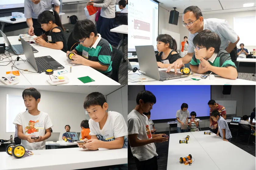 IoT開発ボード『obniz Board』は、モノづくりとICT(プログラミング)を同時に学ぶという「東大阪モノづくりICTクラブ」のコンセプト実現に最適な教材として高く評価されました。9月14日に1回目のプログラミング講座が実施され、参加した子供たちはスマートフォンから操作できるラジコン作成のプログラミング学習を行いました。