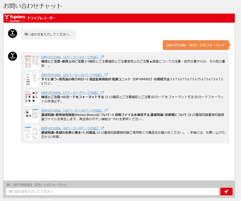 <導入事例>多種多様な製品の問合せに 取扱説明書のドキュメントを活用 ユピテルが、一般ユーザーからの問合せ対応用に AIチャットボットサービス 「LogicalMind TALK」「LogicalMind SCOPE」を導入