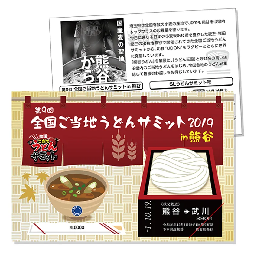 1.「第9回全国ご当地うどんサミット2019in熊谷 開催記念乗車券」