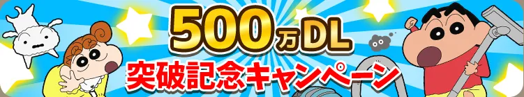 この度、ご好評により累計ダウンロード数が500万件を突破したことを記念するとともに、さらなるユーザー層の拡大に向け、クレヨンしんちゃんグッズが当たるプレゼントキャンペーンを開催いたします。