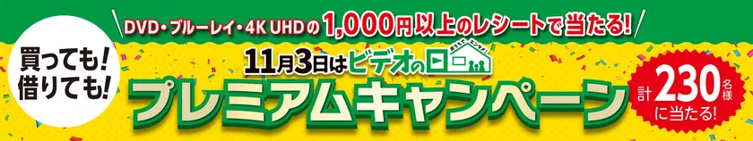 <買っても、借りても応募> 『「11月3日はビデオの日」プレミアムキャンペーン』 <誰でも応募> 『「11月3日はビデオの日」 キャンペーン ~4Kまるごとプレゼント~』