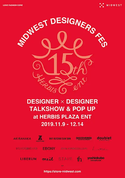 MIDWESTでは大阪梅田のファッションビル「ハービスプラザエント」の15周年記念に伴い、ファッション業界を牽引する14のデザイナーズブランドの協力による「MIDWEST DESIGNERS FES(ミッドウエスト・デザイナーズフェス)」を開催いたします。